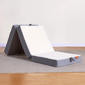 I love this $54 foam floor mattress because it doesn't have any memory foam and is easy to fold up and put away every day. An all-organic latex or cotton futon like thing would be better but i find them floppier/harder to move around! Amazon.