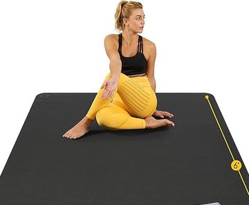 I use these extra large yoga mats because they let me move in a slighly bigger area and roll up nicely. Amazon.